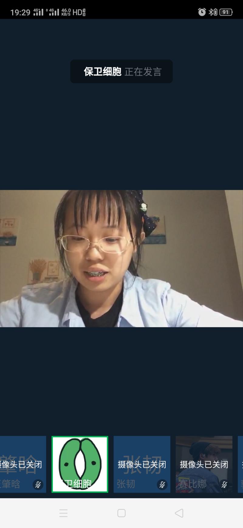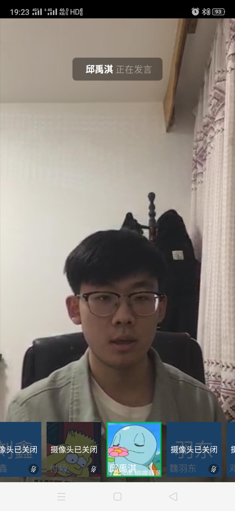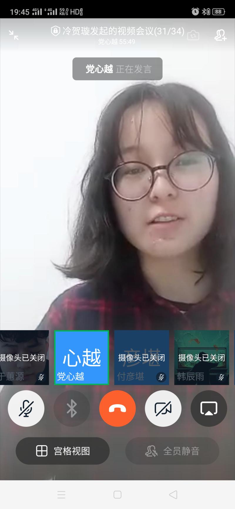 先由2016级孙玲玲同学汇报,她结合如今抗疫战斗和党课学习,深深体会到每一名积极入党的同志都应当增强党性修养,认知到自己与许多优秀党员的差距和不足,激励自己更加努力地学习,更加严格地要求自己。2016级孟庆泽同学结合党课中的纪录片,阐述了自己体会到中国共产党领导的制度优越性,同时也从抗疫英雄们的身上更深地体会到自己应该担当的责任。2016级王策同学从党课和亲身经历体会到如何才能做到全心全意为人民服务,更要将学习的理论与实践结合起来,在各个领域严于律己。2017级于蕙源同学提出从这次抗疫的经历感受到全国人民的决心与毅力,同时也从中国积极援助其他国家的做法中体会到中国建立人类命运共同体的决心。2017级柴昕宇同学从中国共产党领导的中国政府在这次疫情中将人民群众的生命健康放在第一位中体会到了我国的制度优越性,也希望能投身于为人民服务的工作中。2017级胡雯作为一名湖北人,结合自己在这次疫情中的亲身经历,感受到全国抗疫的决心后,对于制度优势和制度自信有了更深的体会。2018级张韧同学从党课的学习中体会到了党的纪律的严明性,明白了要保持对自己的高标准和严要求。2018级韩辰雨同学主要结合自己参与的社区抗疫工作和党课学习,感受到抗疫一线工作人员身上所具有的党性,加深了想要成为一名合格党员的意志。