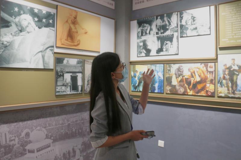 首先,进入一楼展厅后,霍睿老师为同学们介绍了老白校的历史发展脉络,详实的讲解让同学们充分认识到了创校之艰、建校之难。葛公村白求恩学校旧址所在地的微缩模型,让同学们知晓了前辈学习、生活和工作环境的条件艰苦;白银坨老白校学子遇难群雕像,让同学们不由得为这些鲜活生命逝去感到惋惜,深刻认识到如今成就的来之不易。从晋察冀军区卫生学校,到白求恩医科大学,再到中国人民解放军第一军医大学,再至如今的肉视频