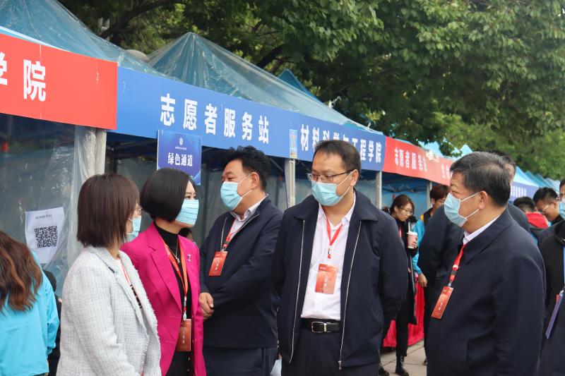 的新生接待处,视察迎新工作,看望初到我校的新生们,也对奋战在迎新工作岗位上的师生们表示慰问。