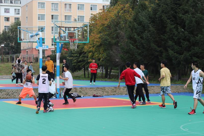 中心校区篮球场组织了2020级新生篮球赛。比赛双方分别是由2020级新生组成的新生联队和由其他高年级同学组成的高年级联队。