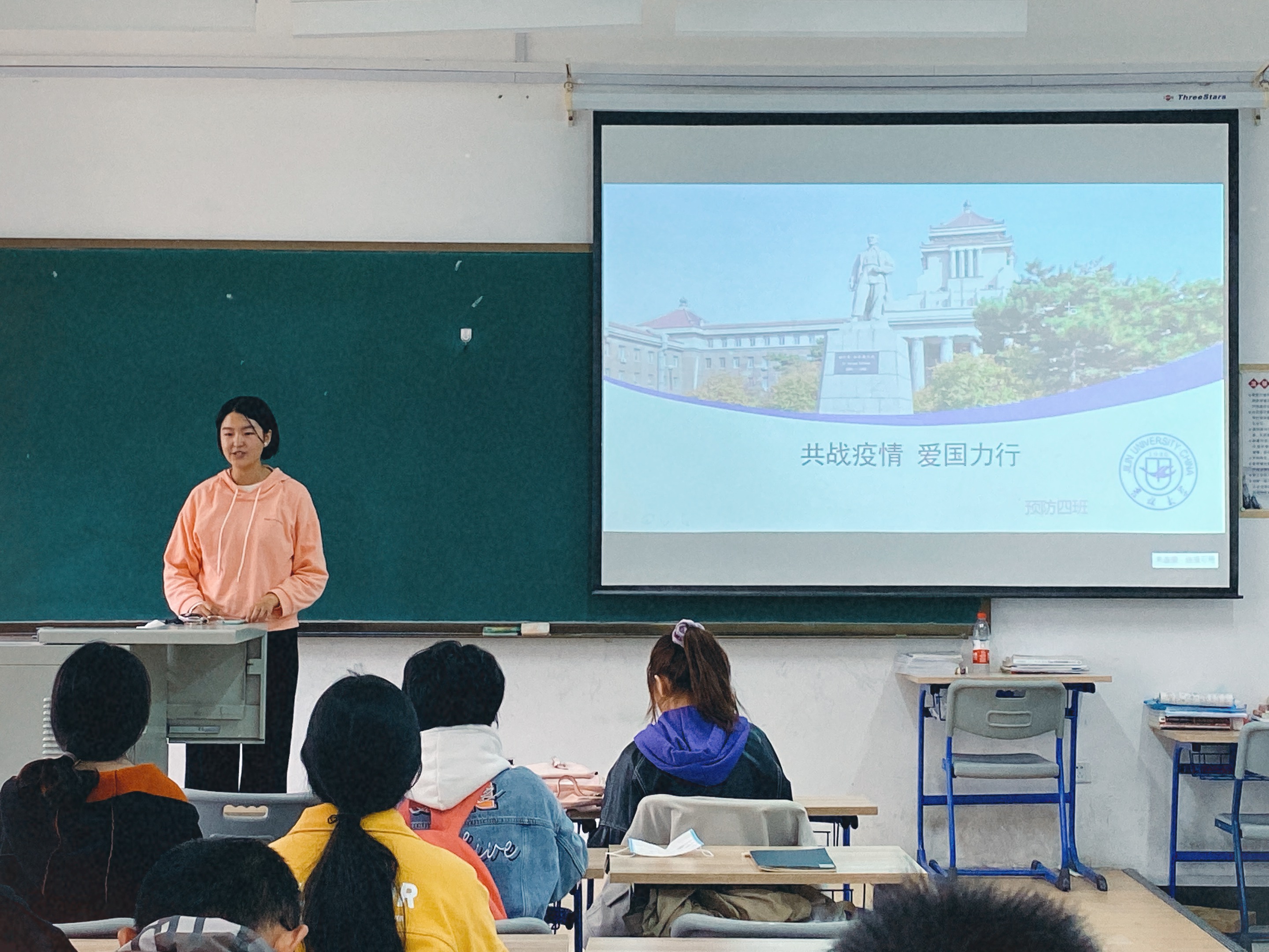 2020级预防四班于中心校区李四光楼108教室举办“共战疫情 爱国力行”主题班会活动,2020级辅导员冷贺璇及2020级预防四班全体同学参加了本次活动。