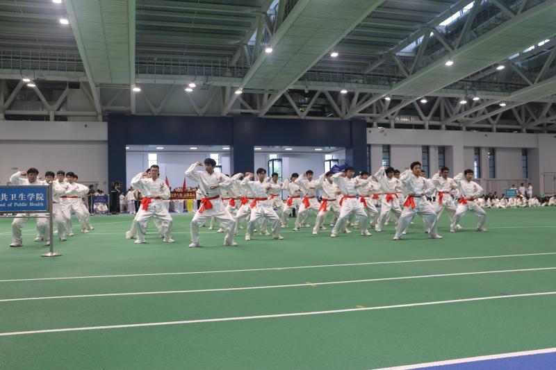 本次活动于下午两点半正式开始,受到天气的影响,比赛转到体育馆内进行。即使天气不佳,同学们的热情却丝毫未受到影响,各个兴高采烈。随着“起步——走!”的高昂口号,队员们迈着整齐的步伐,英姿飒爽地走向了场地中央,伴着“公行天下,卫戍健康,逐梦扬威,共创辉煌”的响亮口号,立正站好,准备开始。随着音乐声响起,队员们拉开架势,开始了八极拳展示。“悟空问路”,“十字顶肘”等动作一气呵成,矫健有力,一招一式中蕴藏力量,整体动作整齐划一,全套八极拳动作也是不徐不疾、行云流水。最后,伴随着裁判员的结束语,本次比赛正式落下了帷幕。