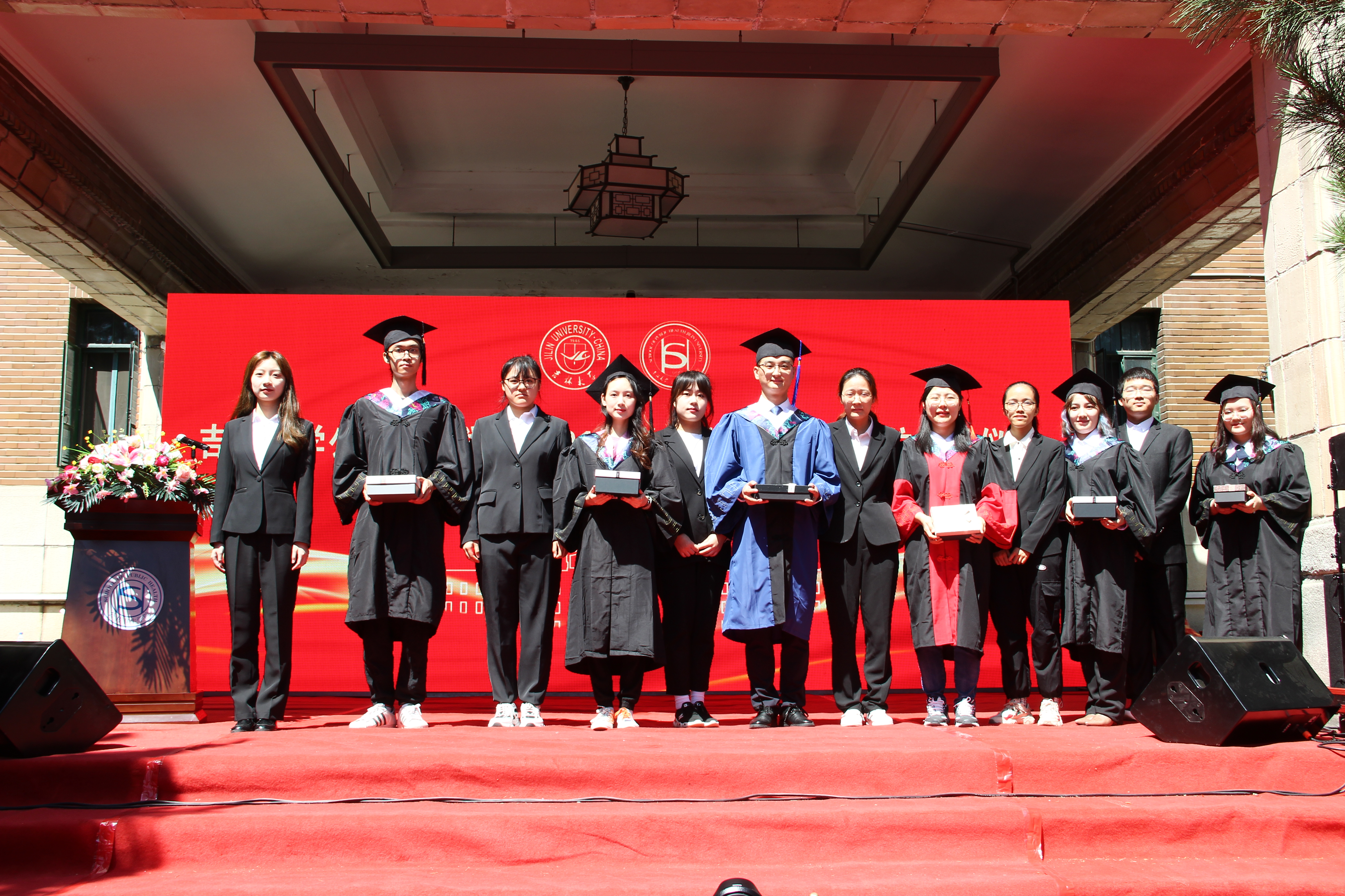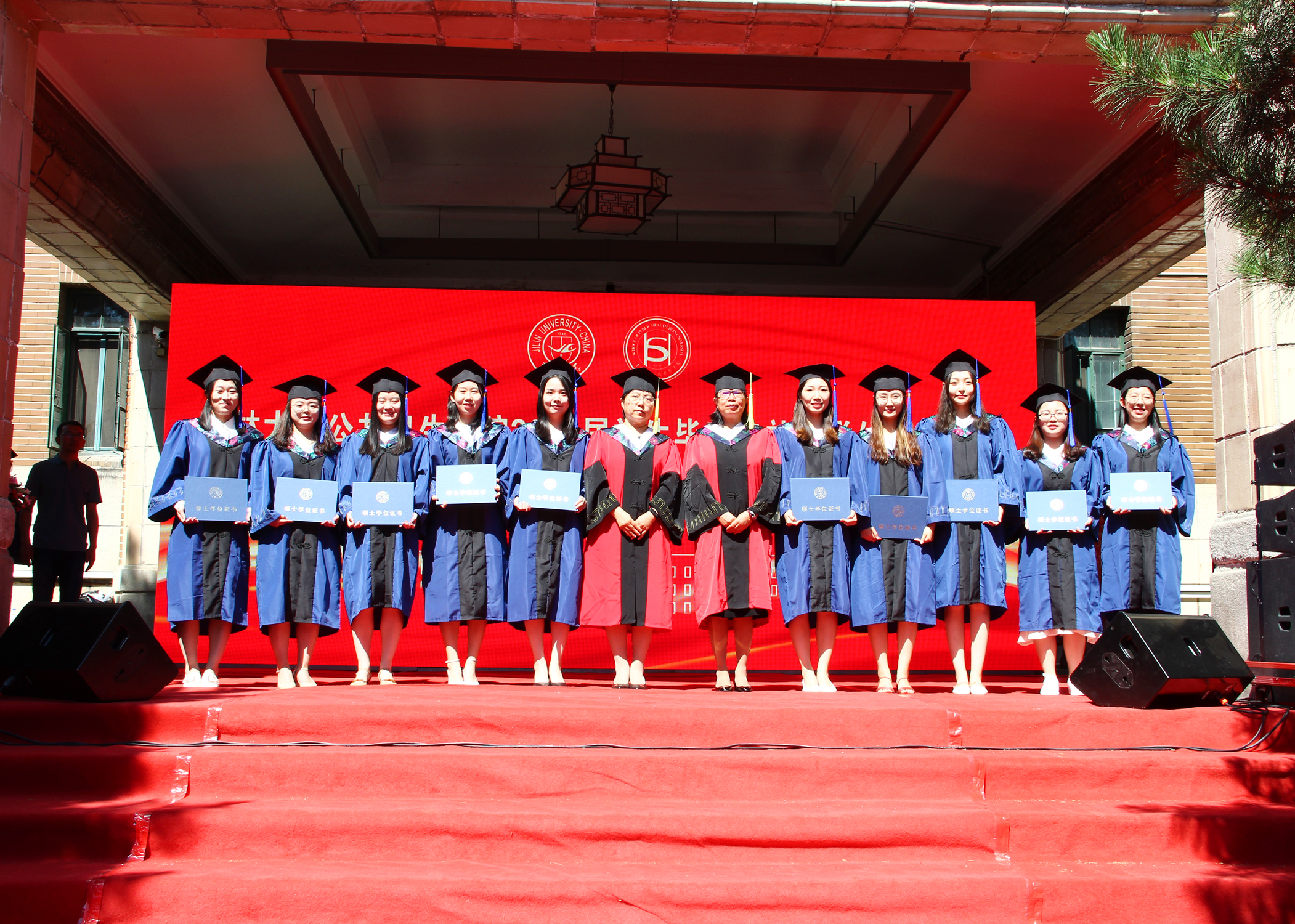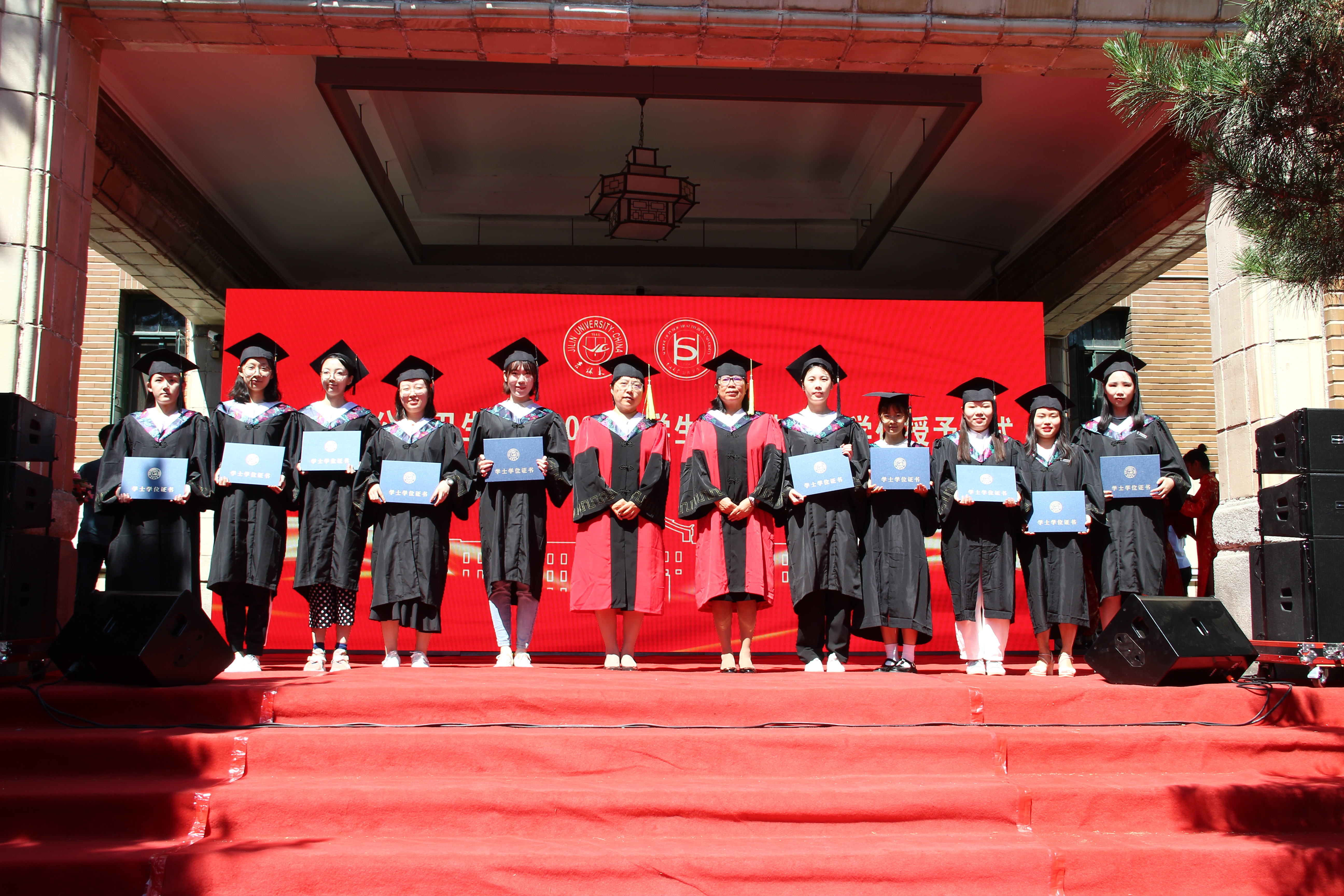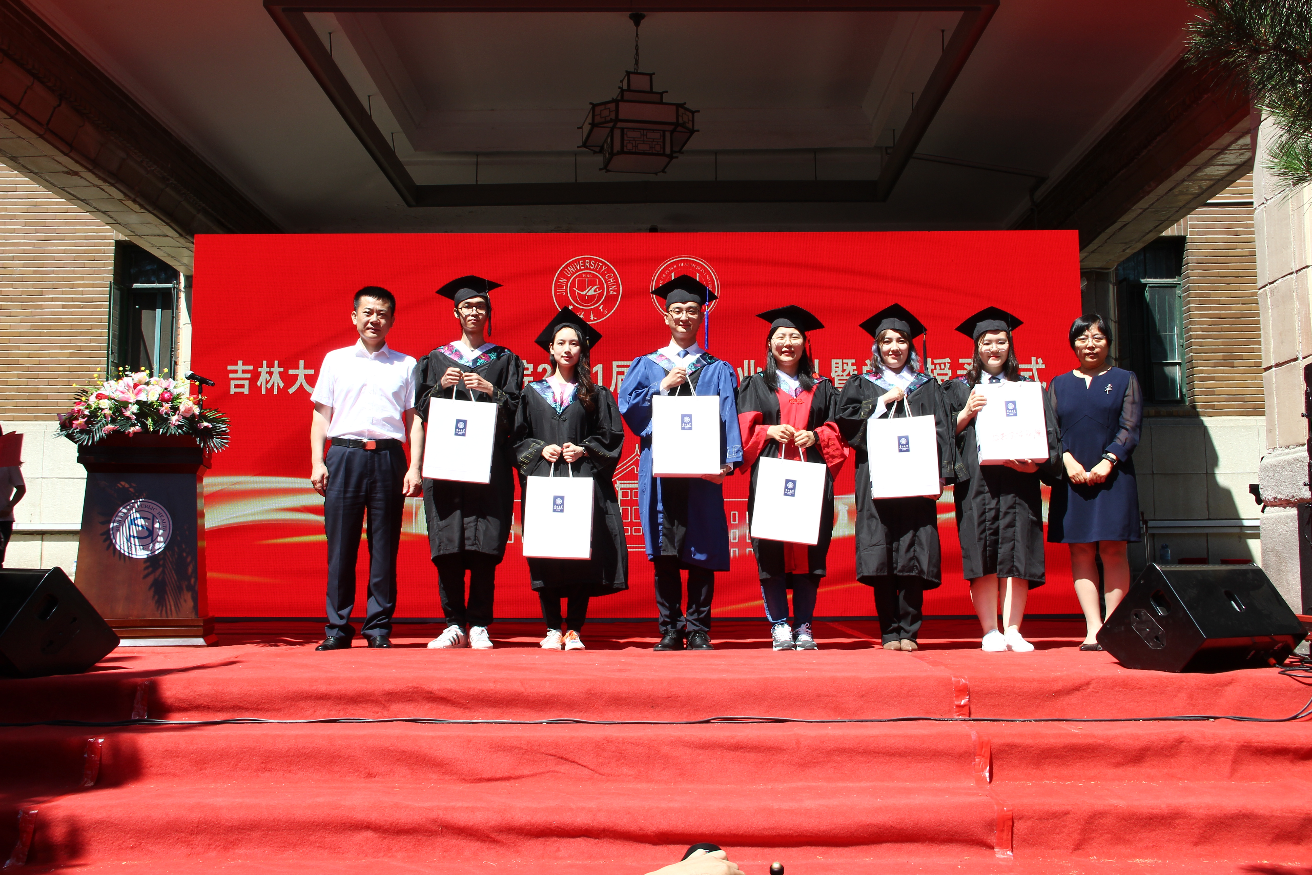伴随着庄严的国歌声,毕业典礼正式拉开序幕。寇长贵宣读了第十届中国大学生医学技术技能大赛预防医学专业赛道东北华北赛区喜报及获奖学生名单、2021届本科毕业生学士学位授予决定及优秀本科生毕业名单。于洗河宣读了2021届硕士、博士学位获得者名单及优秀研究生毕业生名单。随后,魏国志、刘晋宇、赵国利分别为优秀本科生毕业生、优秀研究生毕业生、第十届中国大学生医学技术技能大赛预防医学专业赛道东北华北赛区一等奖获奖学生颁发荣誉证书。紧接着,李娟和刘雅文一同为毕业生授予学位,颁发学位证书并合影留念。