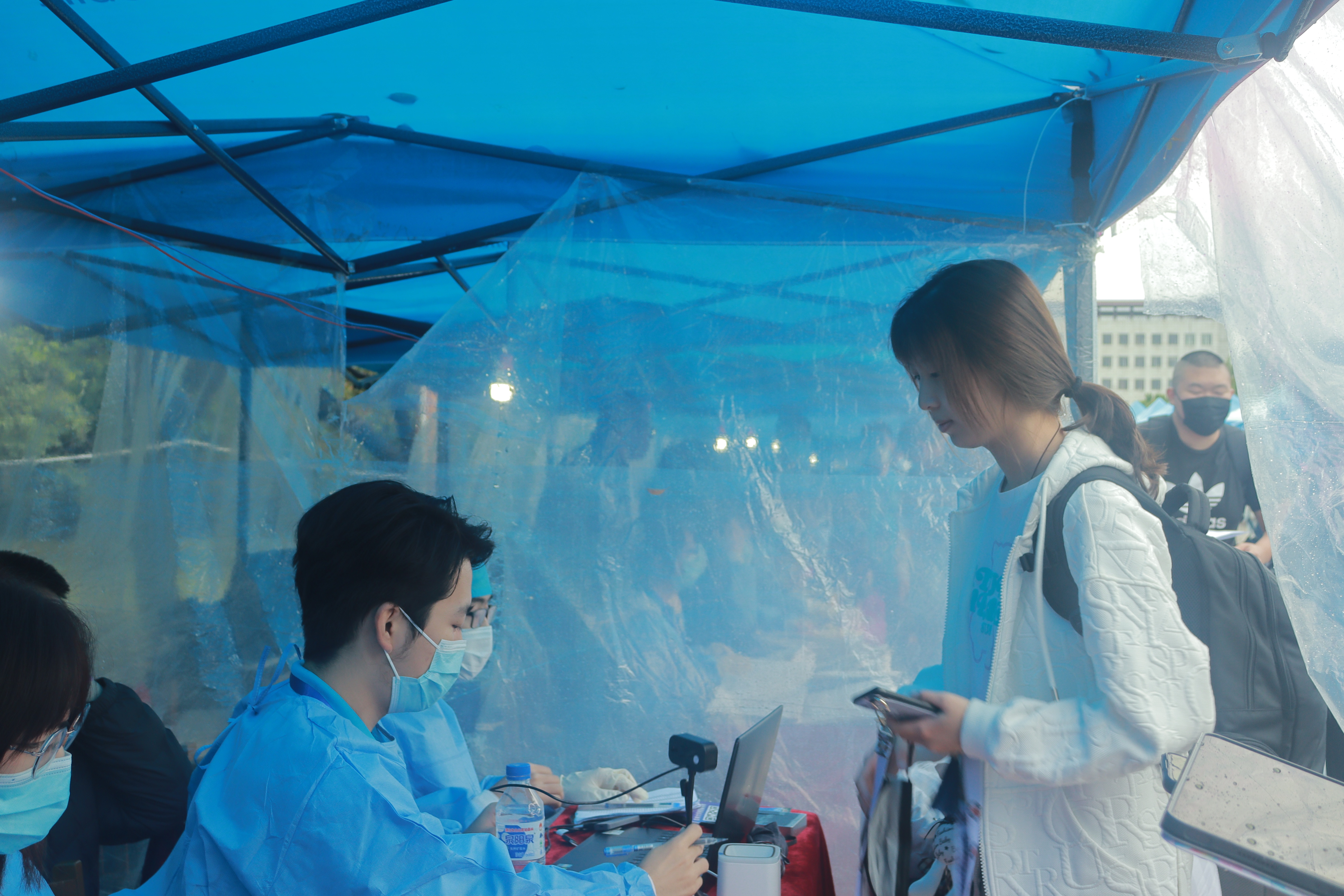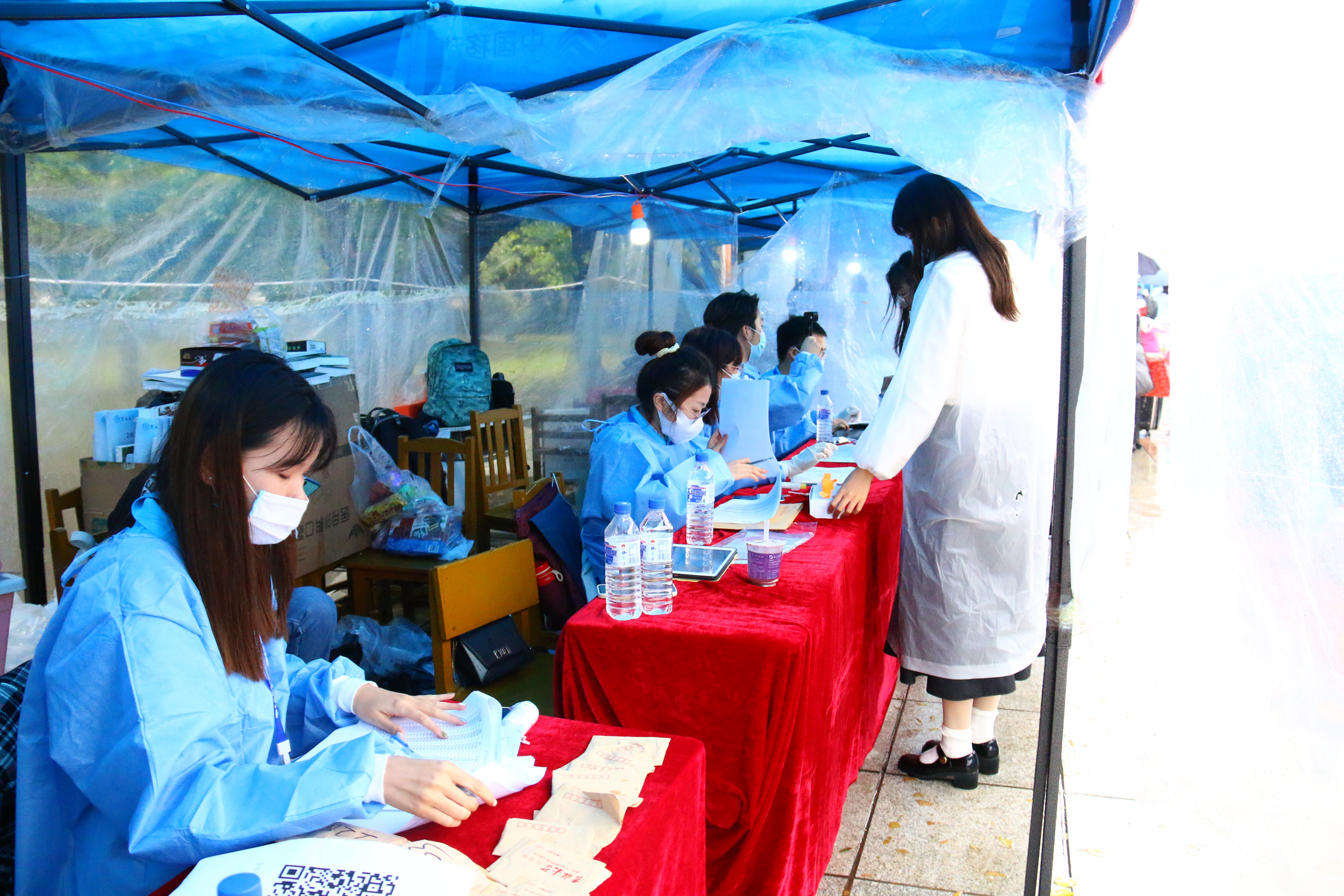 迎新帐篷处,为新生和志愿者们带来温暖的关心和亲切的问候。