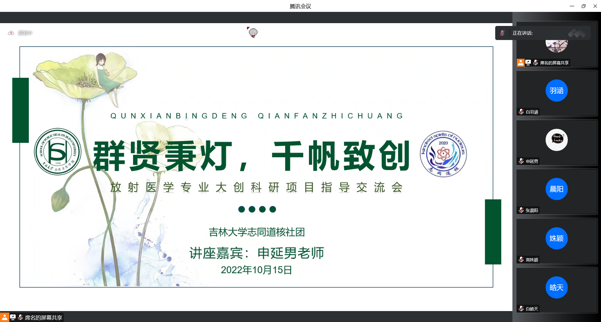 为帮助2021级、2022级放射医学专业同学深入了解大学生创新创业训练项目,搭建与导师沟通交流的平台,以便于日后大创项目的顺利开展,10月15日晚上七点,肉视频